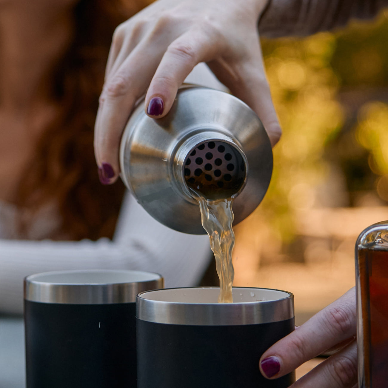 Vier altijd en overal Happy Hour door je Rambler® beker om te toveren tot een cocktailshaker met een lekbestendig deksel dat zowel duurzaam als draagbaar is. De shaker is gemaakt van roestvrij staal en is voorzien van dubbelwandige No Sweat™ isolatie, zodat je drankjes de hele dag lekker koud blijven.